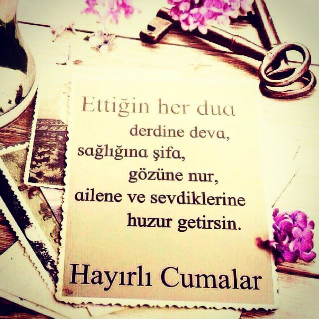 Ettiğin her dua derdine deva, sağlığına şifa, gözüne nur, gönlüne huzur, ailene ve sevdiklerine huzur getirsin. Hayırlı cumalar dilerim.