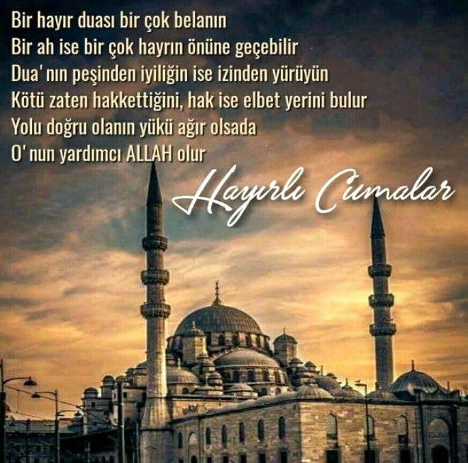 Bu mübarek cuma günü hürmetine evlerimizi aşsız, kalplerimizi aşksız, dillerimizi duasız bırakma… Evlatlarımızı hayırlı, bedenimizi sağlıklı, işlerimizi başarılı kıl… Fakirlere yadım et, zalimlere fırsat verme Ya Rab! Hayırlı cumalar dilerim.