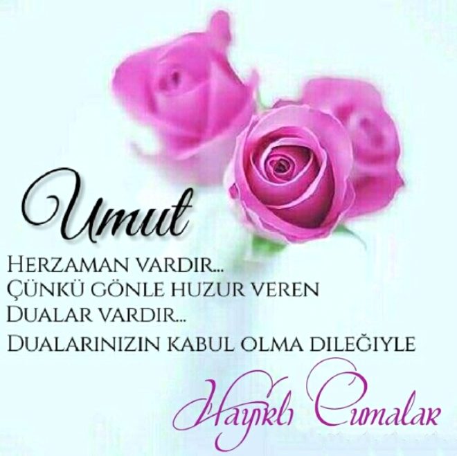 Cuma günü günah işlemeden selametle geçerse, diğer günler de selametle geçer.Güneşin pembeliğiyle doğan, saflığıyla süzülen, herkese nasip olmayan mutluluk denen o en güzel duygu sizle olsun. Hayırlı cumalar dilerim. Kalpler imanla, gönüller huzurla dolsun. Saadetler hepimizin olsun. Ne kurulan bağlar bozulsun, nede dostlar unutulsun. Cumanız mübarek olsun…