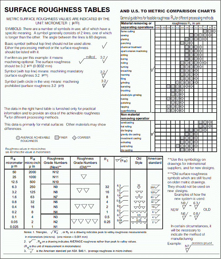 SURFACE ROUGHNESS TABLES